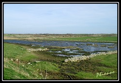 Les marais protégés par une digue de galets |