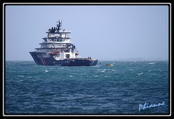 Nous prenons ensuite la direction d'Omonville la Rogue pour constater que ce petit port est mieux abrité. Le calme y règne presque et sans la présence du remorqueur de haute mer prêt à intervenir on se croirait presque un jour ordinaire.