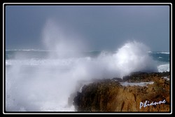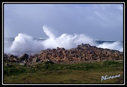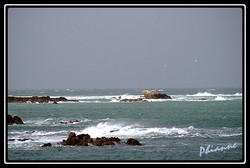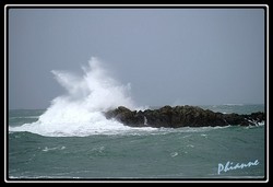 Et quelques photos des vagues qui montent à l'assaut d'un groupe de rochers .