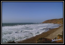 Nous revenons ensuite sur nos pas, un petit arrêt auprès de la chapelle vue le dimanche précédent, nous permet d'admirer encore le jeu de la mer avec le phare. Nous finissons ensuite notre promenade en voiture auprès d'une plage bien connue, la baie d'Ecalgrain et là, comme par miracle, le ciel est redevenu bleu.