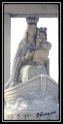 C'est à cet endroit que nous retrouvons le GR qui va nous ramener vers le phare de Gatteville que l'on voit déjà. Après quelques caresses à un ane, nous reprenons le chemin et le phare s'approche de plus en plus. Juste avant le phare une petite statue..